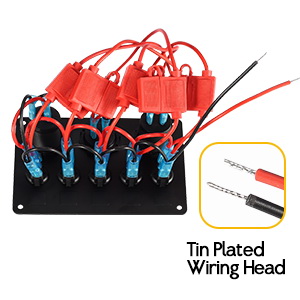 ![]() 15A inline fusePre-wired design with 15a fuse providing you with an overload, over-current and short circuit protection. | ![]() Tin plated wiring headPanel comes with pre-wired, tin plated wiring head has advanced electrical conductivity, not easy to corrode, good for welding. It can be mounted horizontally or vertically. The black wires connect “-” The Red wires connect “+” | ![]() Widely applicableSuitable for RV, trucks, cars, off-road vehicles, buses, ships and yachts, kayak, any DC 12V / 24V equipment, you can install it in the cab or kitchen, bedroom to control the equipment. |
