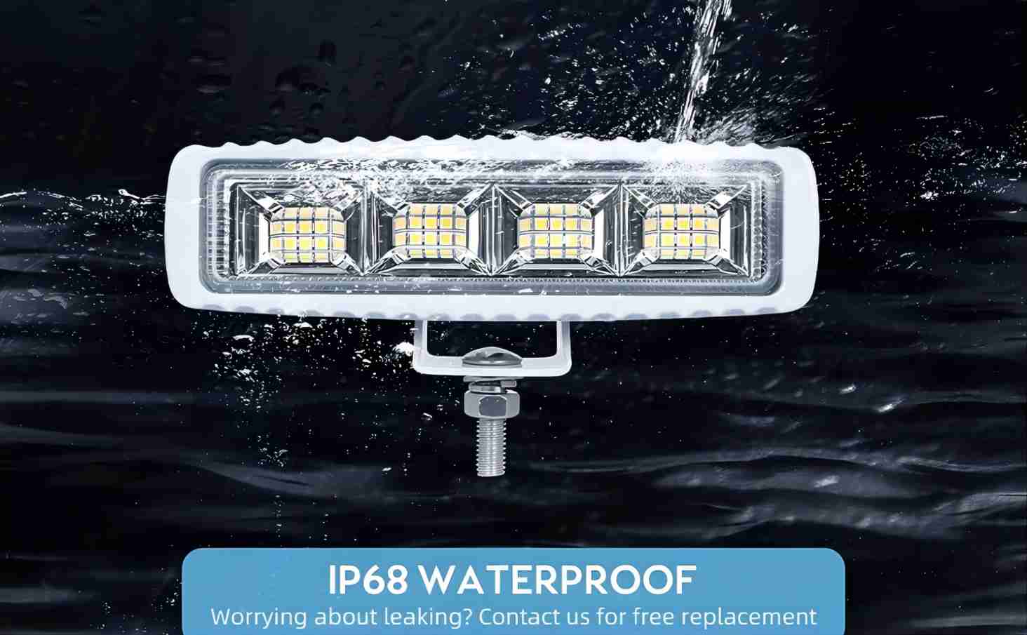 - 150°Led Flood Light: With 4pcs High intensity Imitation LEDs and HD Lens, this spreader lights has 150° illumination range, which gives out adequate brightness for clear visibility, high lumens output up to 4000LMS, increasing safe out activities like night fishing shipping, night riding or any other activities.