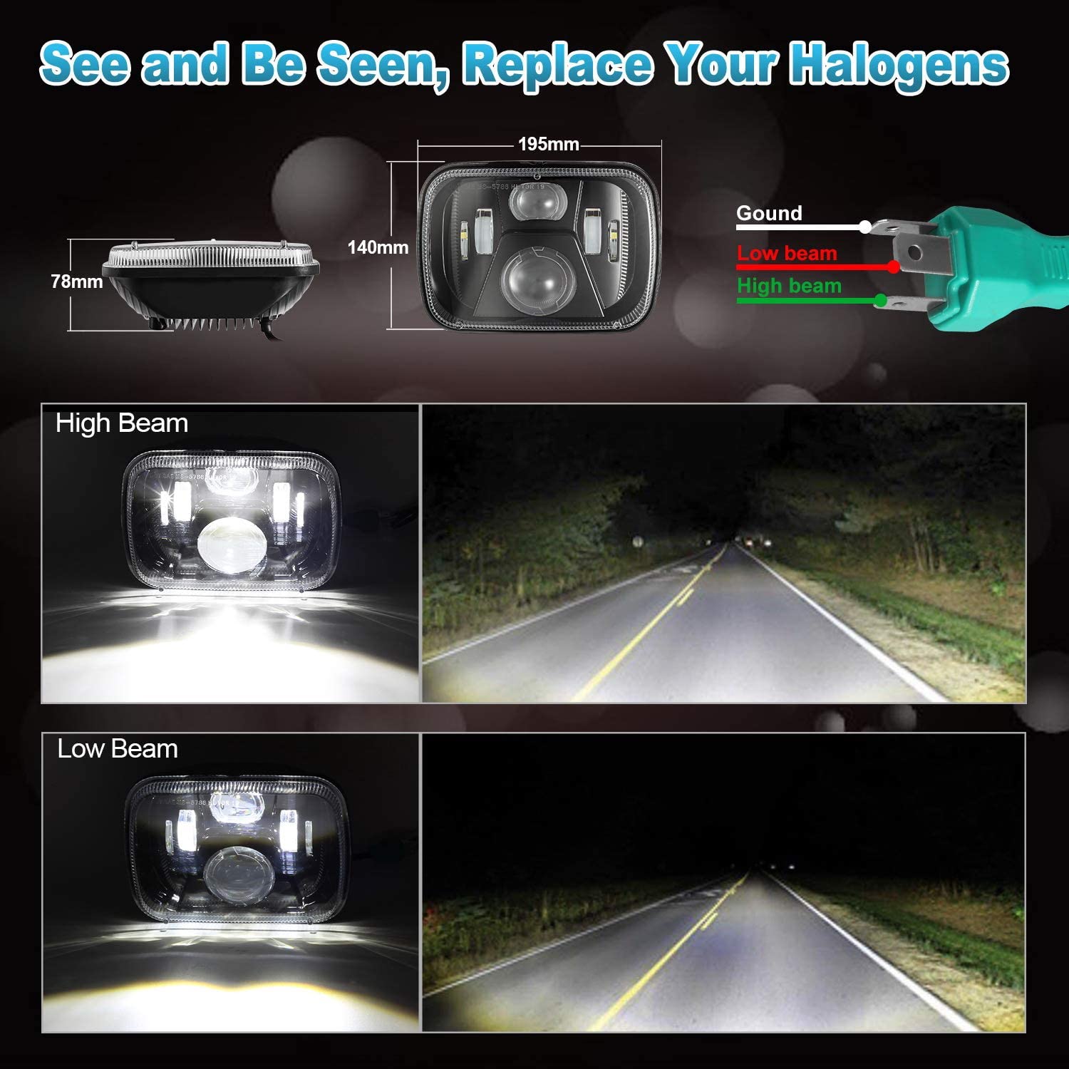 - Scientific Cutoff Line: With advanced LED chips, the 7x6 headlights provide 110W/Pair high output and 6000K color temperature light beam. The beam pattern is a sharp and straight cutoff line to avoid blinding oncoming drivers.